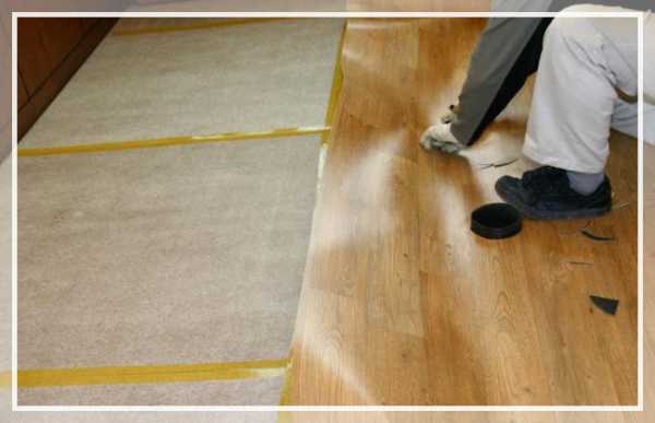 - Очистите основание от старой краски, если планируете сажать напольное покрытие на клей.
