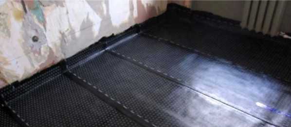 В качестве наиболее дешевого материала можно положить плотную полиэтиленовую пленку. Желательно, чтобы пол укрывался целым полотнищем пленки. В том случае если постелить пленку таких габаритов не удается, гидроизоляцию можно выполнить из отдельных рулонов меньшей ширины.