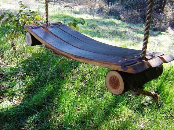 Особую атмосферу участку придадут качели. Их любят и взрослые и, особенно, дети. Не упускайте такую возможность, побалуйте своих родных. Садовые качели несложно так же смастерить из подручных средств. Хоть простые, хоть сложные.