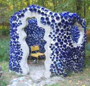Такого материала в достатке в любом доме. Ведь львиная доля напитков продается именно в бутылках из пластика, а уж о том, что можно из них сделать, говорить очень долго. Тема детских игрушек и поделок заслуживает отдельного внимания (далее по тексту). Пластик — материал универсальный и долговечный, ему не страшны ни солнце, ни влага. Куда же применить это сырье, которого у нас в избытке? Во-первых, это объекты строительства. Сейчас из легкой тары умельцы и фантазеры делают абсолютно все (от теплиц до беседок и даже домиков), и надо сказать, получаются весьма интересные постройки. Если это для вас слишком глобально, то попробуйте смастерить какую-либо мебель: кресло или пуф. Такие поделки из подручного материала не только внесут новизну в интерьер, но и удивят гостей.