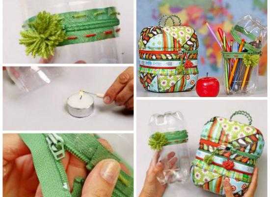 Из разнообразных по форме емкостей получаются замечательные кошельки, коробы, шкатулки и сундучки для хранения различных мелочей. А некоторые дизайнеры давно используют пластик для создания целых коллекций украшений: браслетов, брошей, колье и проч.