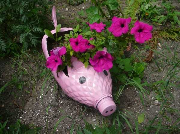 Кстати тоже интересное использование обычной старой бутылки. В данном случае — это поросёнок. Но на самом деле бутылка может стать кем угодно!