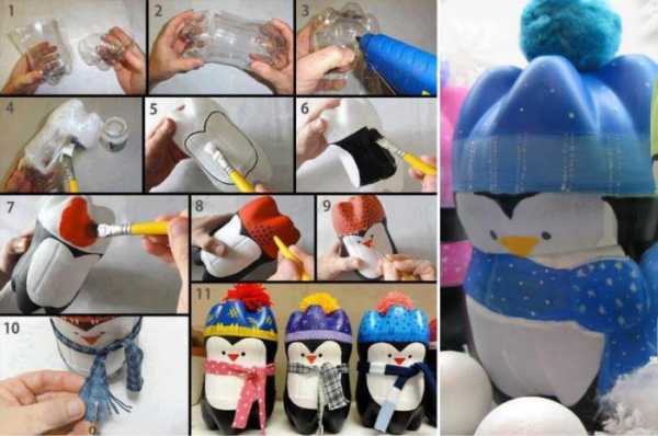 Поделки из подручного материала, сделанные совместно с родителями (из тех же пластиковых бутылок), зачастую становятся более интересны, чем магазинные. Это могут быть сложные роботы, собранные из множества элементов разноцветного пластика, или простые пингвины, раскрашенные с помощью акриловых красок. А если вы обладаете навыками шитья, то простор для творчества еще больше. Любые детские поделки из подручного материала своими руками – это всегда весело и интересно.