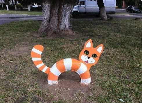 Использованные покрышки — материал распространенный, найти его можно в больших количествах, причем совершенно разных размеров. Но что из них сделать, кроме известных всем лебедей и клумб? Берите пример с корейского мастера Йонг Хо Цзи, его работы впечатляют и вводят в полный восторг. Великолепные животные с четкой структурой каждой мышцы сделаны из обычного деревянного каркаса и старых покрышек. Безусловно, это высший пилотаж, но и вам мы рекомендуем уходить от банальностей и условностей. Используйте больше ярких красок и жизнерадостных идей, ведь даже самое простое может быть гениальным.