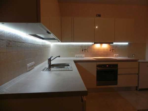 Первый вид подсветки – это подсветка рабочей зоны на кухне светодиодной лентой, которая приобрела популярность не так давно.