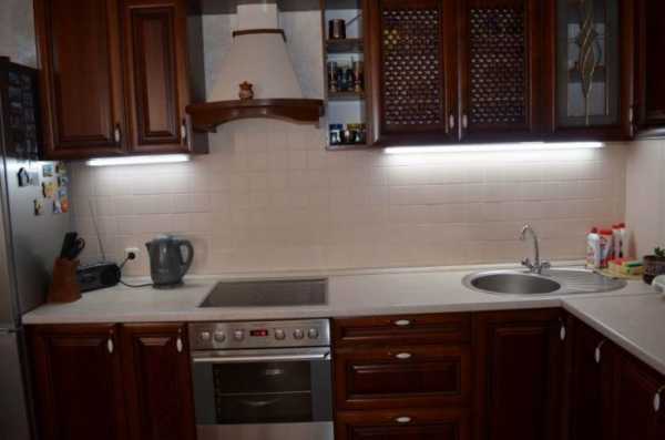 Если кухонный гарнитур у нас изначально без подсветки, мы легко можем сделать её сами.