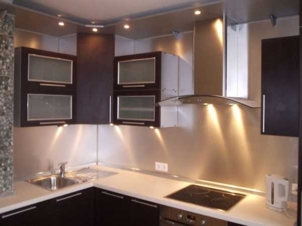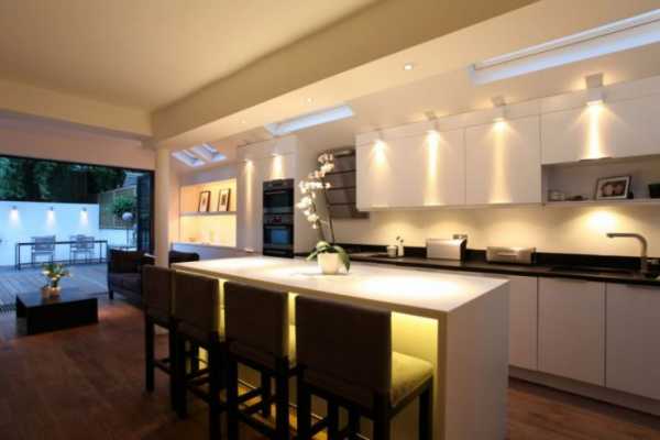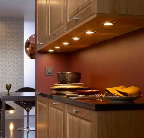 Освещение рабочих столов на кухне с помощью точечных светильников