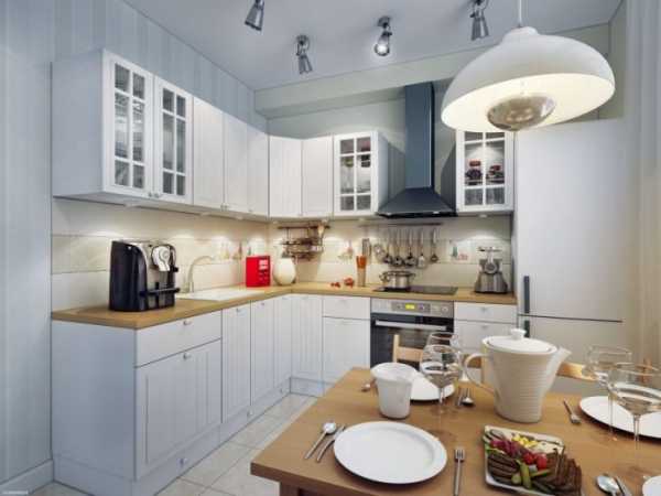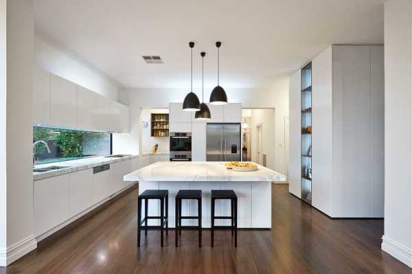 Лампы направленного белого света на кухне