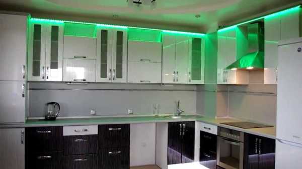 Зелёная подсветка на кухне