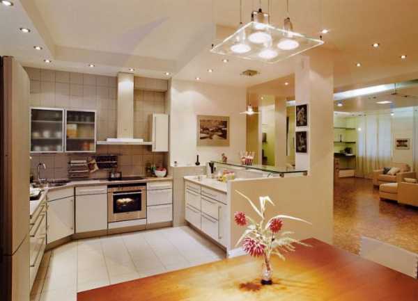 Интересно! На кухне, как и в другой комнате, могут быть использованы все виды освещения одновременно.
