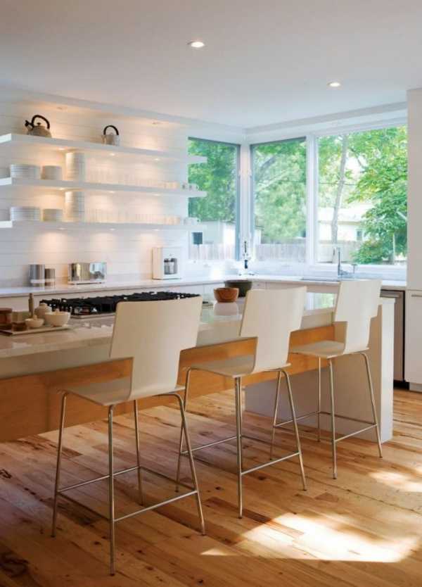 Разделяю кухню на зоны, можно осуществить уникальную и очень функциональную подсветку. Самым лучшим вариантом будет создание отдельной рабочей зоны и зоны отдыха или приёма пищи. Подсветка отдельных затемнённых участков, или автоматические включатели при открывании тумбочек и шкафов дополнительно помогут вам сделать свою кухню уютной и красивой.
