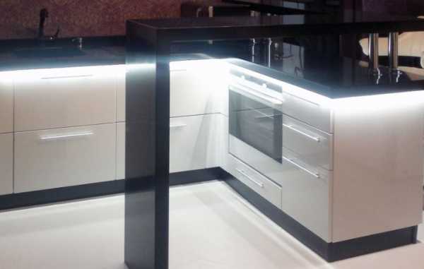 Интересно! Подсветка может быть не только на навесных шкафах или стенах, можно также сделать рабочую поверхность с подсветкой, например, с помощью LED-панелей.