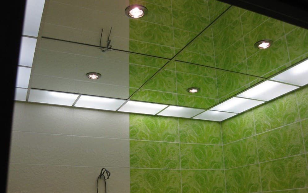 Пластиковый подвесной потолок в ванной из панелей ПВХ