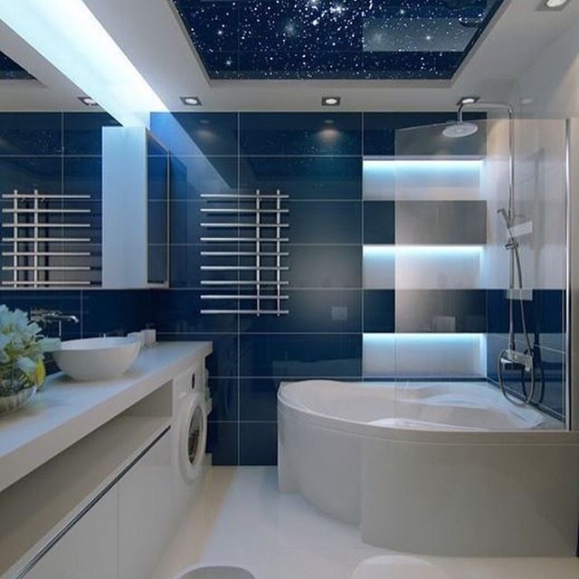Самое, кажется, категорическое условие — низкая высота помещения, которая ограничивает высоту подвесных конструкций. Самодеятельный автор будущего потолка должен понимать, что уменьшение объема маленькой ванной резко снизит уровень ее комфорта.