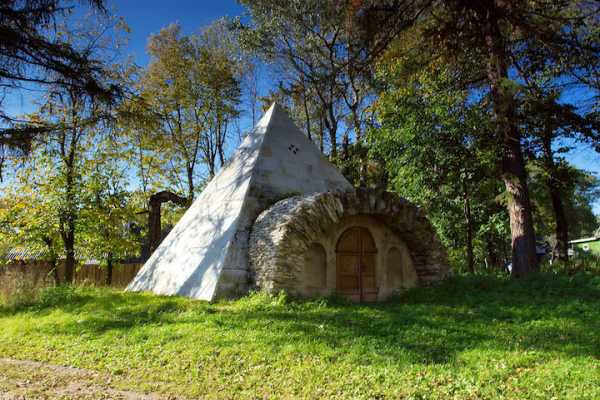 Теперь, постоянно подсматривая в проект, выкопайте небольшой котлован. Он необязательно должен быть глубоким – в рост человека, иначе мы начнем уже капитальную постройку: можно сделать углубление на 1 м, а по сторонам, скажем, 1,2 х 1,4 м. Это примерные размеры. Естественно, копать будете долго и это сложно, но поверьте: результат того стоит!
