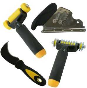 При раскрое следует учитывать необходимость точной стыковки рисунков и узоров на двух смежных полотнах. Поэтому их потребуется подрезать. Это можно будет сделать с помощью специального ножа для раскроя линолеума. Разрез материала рекомендуется осуществлять за один проход, для чего необходимо делать достаточно сильный нажим на нож. Чтобы при этом не затупить лезвие об основание пола, рекомендуется подложить деревянную рейку или планку под место разреза.