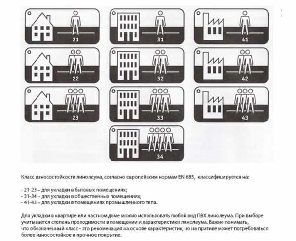 Соответственно, для квартир/домов прекрасно подойдет линолеум 21-24 класса с маркировкой P или M.