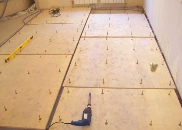 3. Закрепляйте листы фанеры при помощи клея и саморезов. Расстояние между саморезами около 35 см.