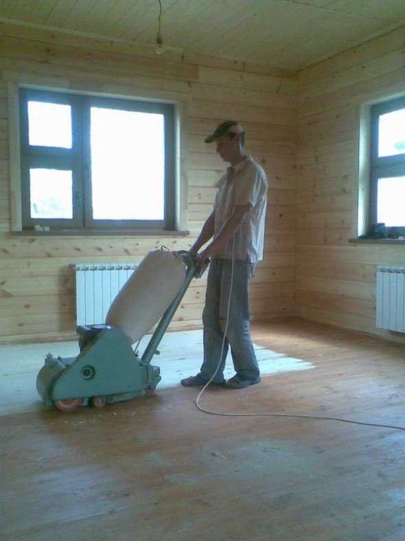 4. Следующий этап — осмотр деревянного пола. Если на полу есть поврежденные доски — замените их на новые. При помощи строительного фена и мастерка удалите остатки старой краски. Шлифмашинка или цыклевание поможет избежать перепадов и кривизны деревянного пола. Максимальные перепады деревянного пола должны составлять 2 мм.
