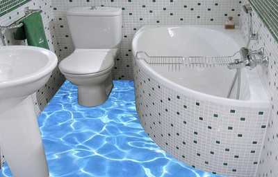 В квартирах чаще всего наливной пол можно встретить в ванной комнате. Они имеют необычный дизайн 3D изображения на полу.