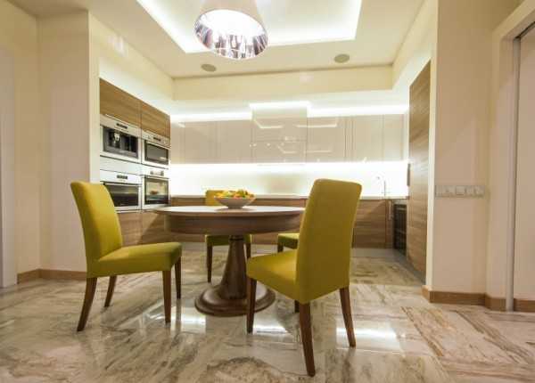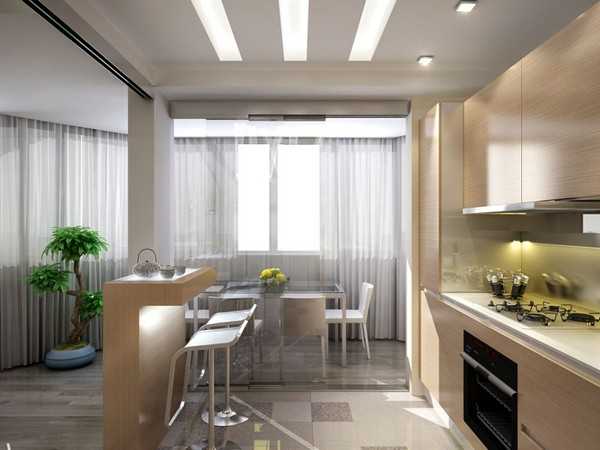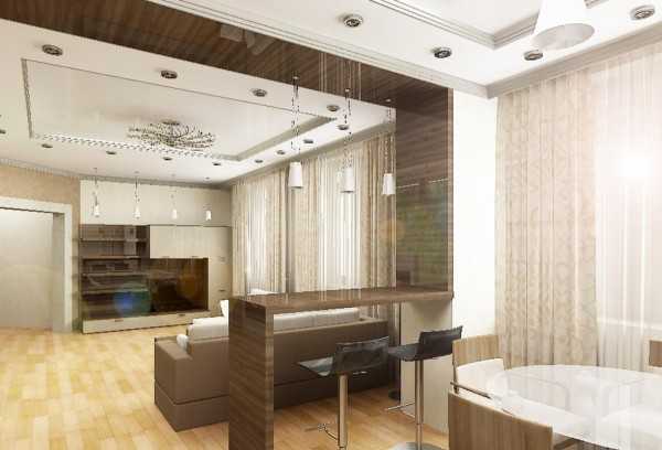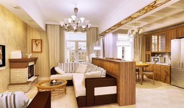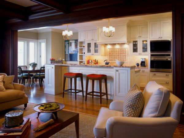 Интерьер кухни совмещенной с гостиной: зонирование, перегородки, освещение, фото
