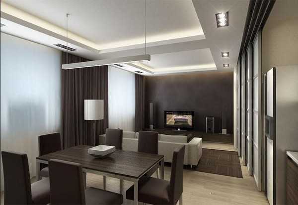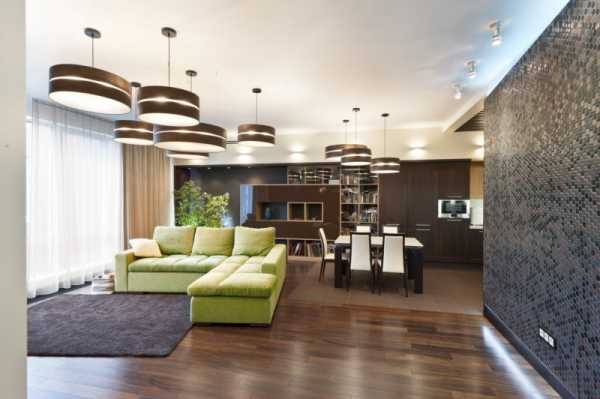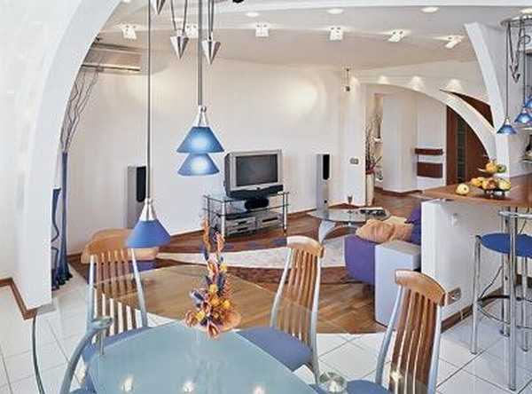 Как отделить кухню от гостиной перегородкой, думаем, понятно, но это — еще не все. Планировка гостиной-кухни предусматривает еще и выбор освещения. Это не менее важно чем все, о чем говорили раньше.