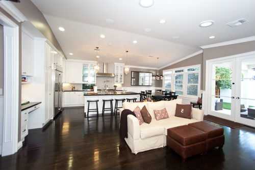 Здравствуйте, уважаемые читатели! Согласно последним тенденциям, многие частные дома и квартиры планируются таким образом, чтобы одно большое по площади помещение выполняло одновременно две функции, а именно играло роль кухни и гостиной. Ну а чтобы дизайн гостиной, совмещенной с кухней, воспринимался наиболее положительно, при ремонте необходимо уделить вниманию логичному расположению мебели, цветовой гамме помещения, приобрести подходящую вытяжку и т.д. В целом, об этом всем и многом другом, как раз и пойдет речь в данном обзоре.