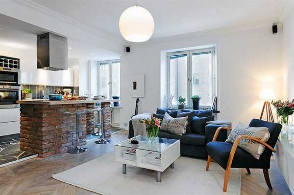 Барная стойка для зонирования совмещенной гостиной с кухней