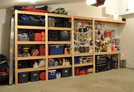 Семейный мастер на все руки Наше последнее предложение по планированию хранения в гараже своими руками — это полная конструкция «все на стене», в которой все вещи не лежат на полу. Как вы можете видеть на фото, вы можете спрятать все, что есть в вашем гараже, в этот компактный дизайн.