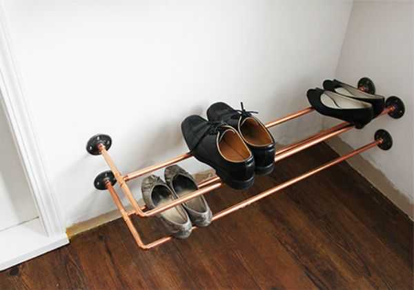 Давайте рассмотрим по фото как сделать такую полку для обуви из металлических водопроводных труб своими руками. Пошаговые фото смотрите в фото галерее ниже.