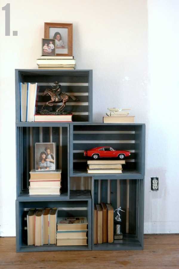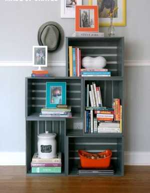 Возможно, это будет самая простая полка, которую вы когда-нибудь делали. Итак, необходимо найти пять ящиков и банку краски. Потом берете кисть и красите тару в цвет, который лучше всего подходит для вашего интерьера. Когда краска высохнет, все, полка готова.