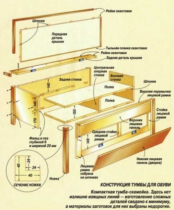 Например по этой схеме сделать тумбу для обуви совсем не сложно
