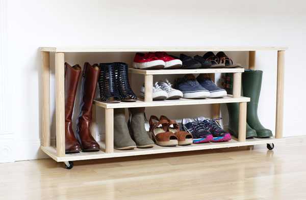 Оригинальная полка для обуви из фанеры украсит любой интерьер