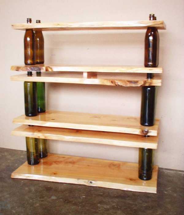 Давайте рассмотрим как сделать обувную полку(стеллаж) из пивных стеклянных бутылок своими руками. Если у вас уже есть четыре пивные бутылки (или из под шампанского) и две доски, то считайте что половину дела вы уже сделали. Конечно, помимо этого вам ещё понадобятся недорогие крепления, которые можно купить практически в любом строительном магазине.