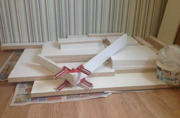 - Скрепляем детали вначале внутренних полочек, затем основных.
