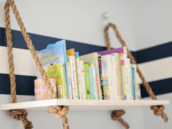 Такая полочка хорошо смотрится в детской комнате или в ванной.