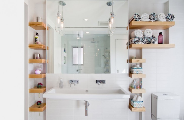 Хороший визуальный эффект создают полки, цвет которых сочетается с общим тоном стен или мебели.