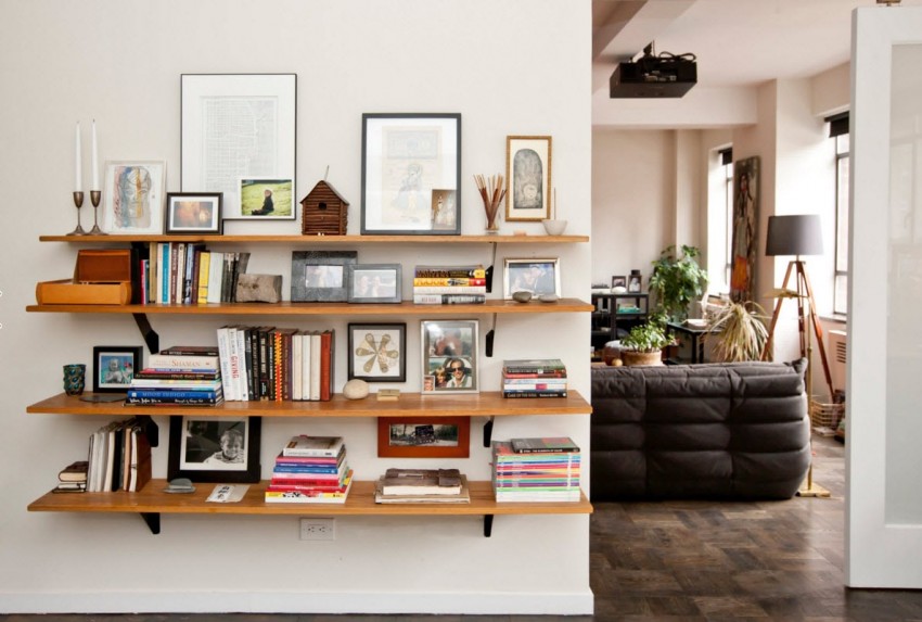 Для небольших предметов разумно смастерить аккуратные легкие полочки или модульную систему, объединенную одним стилевым решением.