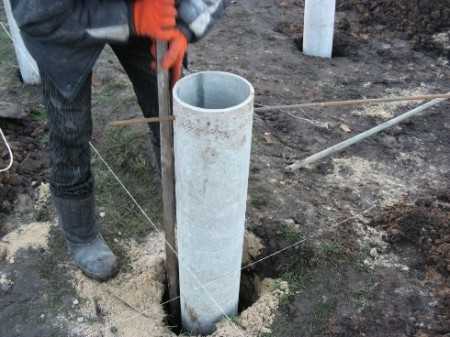 Обычно фундамент закладывается на глубину ниже промерзания грунта. Для этого на заданную глубину выкапывается траншея по периметру постройки. Есть и более простой способ заложения фундамента, правда, он подходит только для небольших и достаточно легких конструкций. При этом фундамент закладывается на глубине 50-70 см если в качестве грунта выступает песок или 70-80 см – если глина. Тип фундамента выбирается ленточный или столбчатый. Столбы для столбчатого фундамента выполняются из кирпича и имеют сечение 40х40 см, устанавливаются они под стойками каркаса. Ленточный фундамент заливается бетоном или выкладывается бетонными плитами.