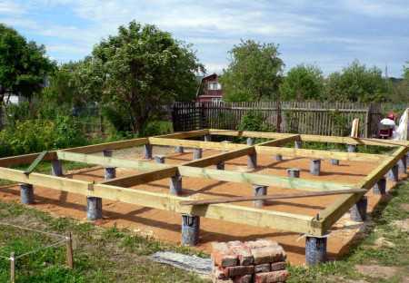 Под каркасный домик фундамент можно установить самостоятельно, если имеется хоть малейший опыт строительства. Но если на территории дачи работает строительная бригада, пусть лучше она занимается данным процессом, так как фундамент дома играет очень серьезную роль.