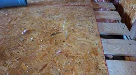 - Крыша. Здесь так же, как со стенами, поступить не получится. Сначала придется изготовить деревянные перекрытия, потом установить стропила (если внешний вид особого значения не имеет, то можно остановить свой выбор и на односкатной крыше – в изготовлении она намного проще), сделать обрешетку и покрыть крышу кровельным материалом. Самым простым вариантом в этом отношении будет гибкая черепица – укладывается она очень и очень просто. Ее фрагменты прибиваются мелкими гвоздиками прямиком к листам ОСБ, которые заранее нужно будет нашить поверх обрешетки.
