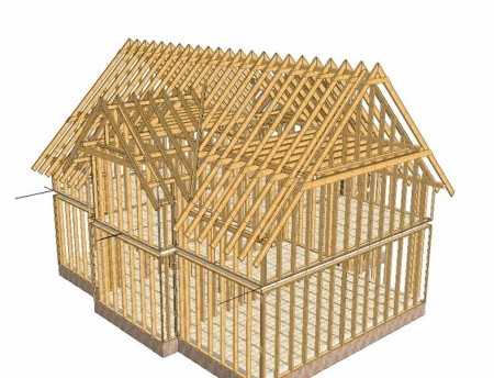 Установка каркаса происходит в комплексе с монтажом стропильной системы по крышу. Если же крыша дома будет по собственному проекту, возможны и другие варианты.