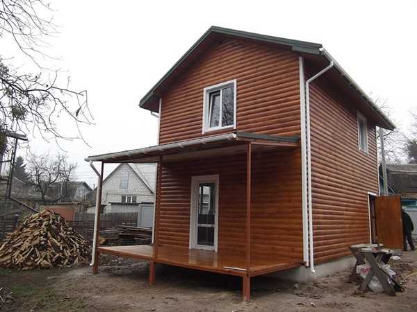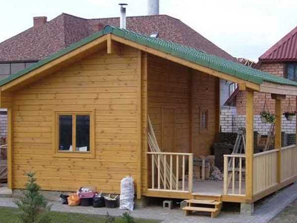Некоторые небогатые дачники пристраивают потом к бытовке веранду. А если затем обшить это незатейливое сооружение вагонкой, то оно вполне сойдет за скромный летний домик.