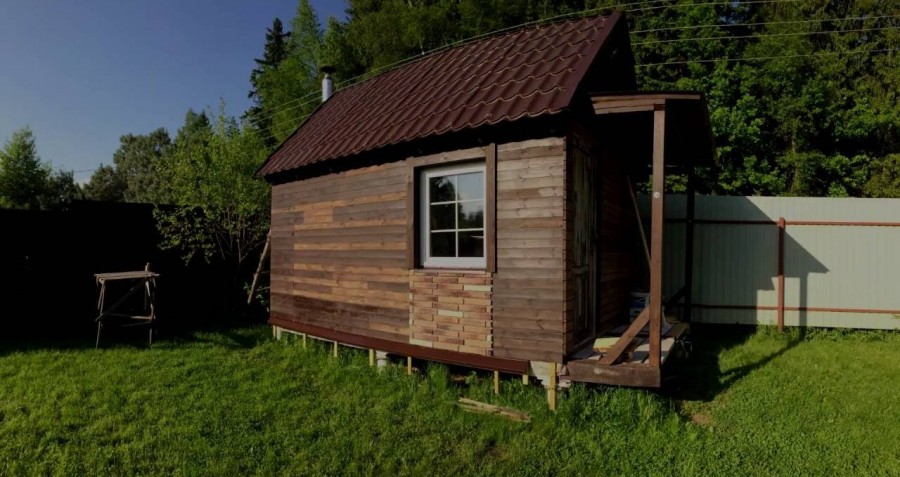 Строительство каркасной бани своими руками на видео демонстрирует процесс сборки от фундамента на сваях до крыши.