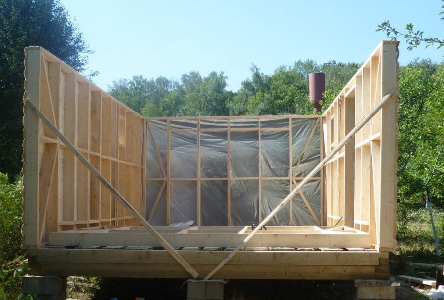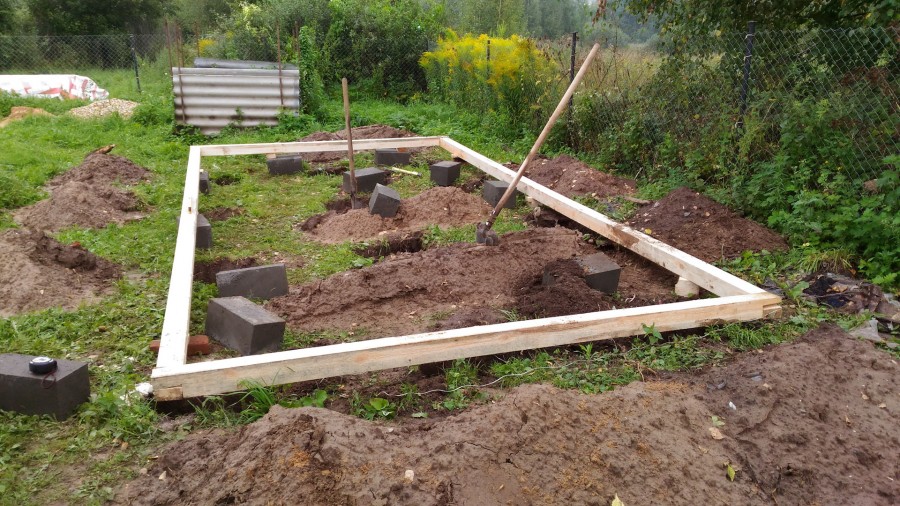 В некоторых случаях, наоборот, экономят на всем, в том числе и на опоре. Каркас собирают на чем придется. Такая постройка начнет отсыревать в первый же сезон! Но разрешено делать такие фундаменты под каркас: