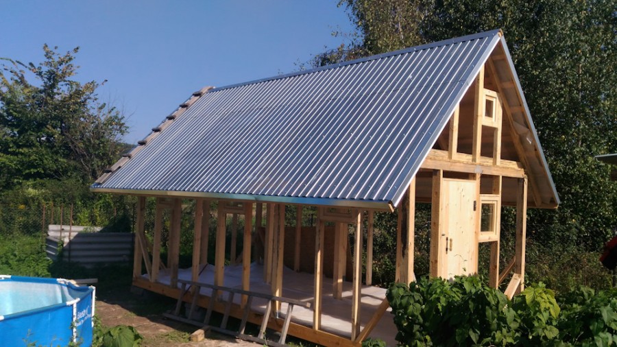 - Строительство деревянного каркаса из открытых панелей предусматривает добавление изоляции и столярных изделий на месте.