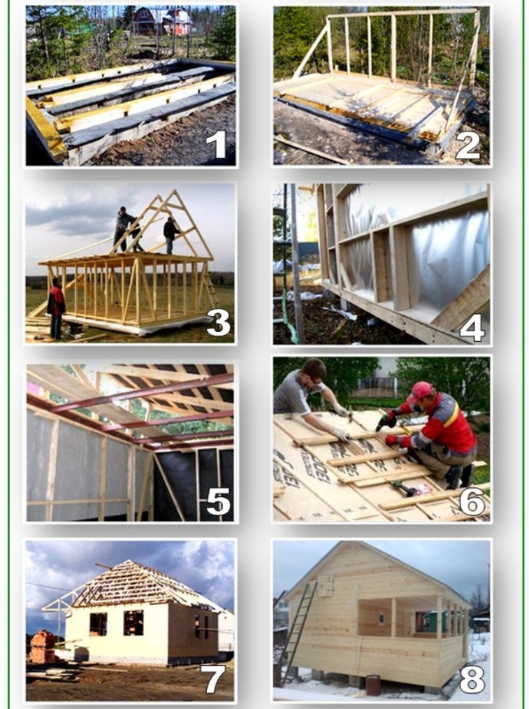 А также защитить стены от воздействия высокой температуры рядом с нагревательной печью. Перечислим основные этапы строительства каркасной бани.