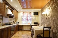 На кухнях, обладающих маленькой площадью рекомендуется использовать глянцевые натяжные потолки, имеющие светлый оттенок или чисто белый цвет, который визуально создает в помещении атмосферу простора и свободы и делают кухню светлой и уютной, даже при отсутствии большого количества осветительных приборов. Поверхность, изготовленная из такого материала, способна отражать около шестидесяти процентов света. На глянцевых покрытиях копоти и пыли остается гораздо меньше, чем на полотнах, изготовленных из других материалов. Особенно эффектно глянец смотрится в помещениях, которые выполнены в стиле минимализм. Если же глянцевое полотно по каким-либо причинам не вписывается в интерьер, можно использовать сатиновое покрытие тоже светлых тонов.
