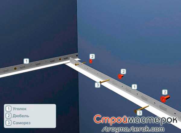 Крепление декоративных уголков необходимо выполнять поочередно, при помощи саморезов и дюбелей.