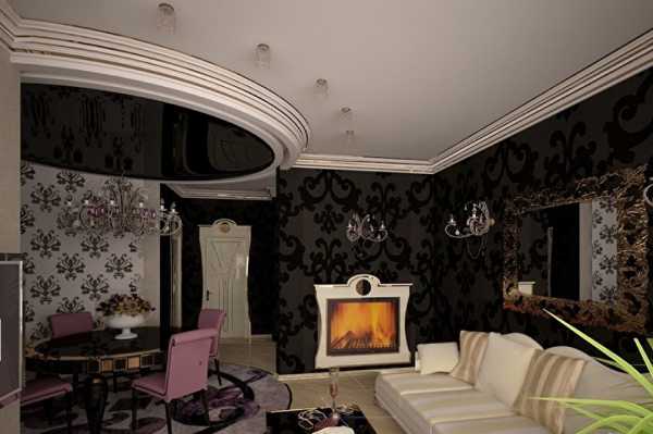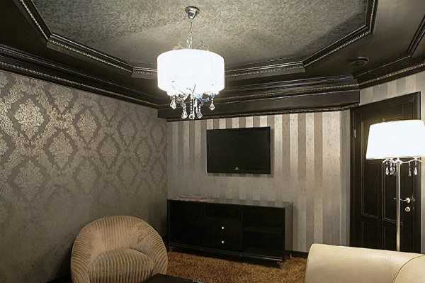 Натяжной потолок без плинтуса выглядит эстетичноМинус заглушки в том, что она достаточно плохо сочетается с обоями. Во-первых, нужно клеить обои до установки заглушки, иначе обязательно появятся разрывы между заглушкой и полотном обоев, а во-вторых, некоторое недобросовестные производители используют добавки жесткого пластика, из-за чего заглушка может просто порвать полотно обоев.